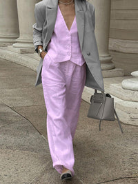 Stay cool and stylish in our new casual and fashionable sleeveless vest and trousers two-piece set. Made with a blend of 95% cotton and 5% linen, this outfit exudes a laid-back charm perfect for any occasion. With a modern silhouette and versatile pattern, this set is a must-have for the fashion-forward individual.